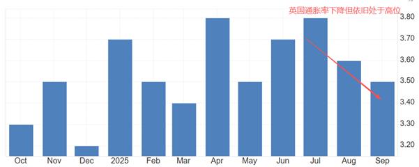 Inflation gab es schon immerDie Daten, die Zentralbanken verschiedener Länder am meisten schätzen. Die jährliche Kern-VPI-Rate im Vereinigten Königreich lag im September bei 3,5 % und damit über den 3 % in den USA im gleichen Zeitraum. Die Zentralbanken verschiedener Länder betrachten 2 % als Standard für eine moderate Inflation, und die britische Inflationsrate liegt offensichtlich viel höher als dieser Standard. Im dritten Quartal zeigte die britische Inflationsrate Anzeichen eines kontinuierlichen Rückgangs, es ist jedoch ungewiss, ob sich dieser Trend fortsetzen kann. Beispielsweise sanken die Inflationsdaten von Januar bis März dieses Jahres ebenfalls drei Jahre in Folge, doch im April stiegen die Daten plötzlich auf 3,8 %.