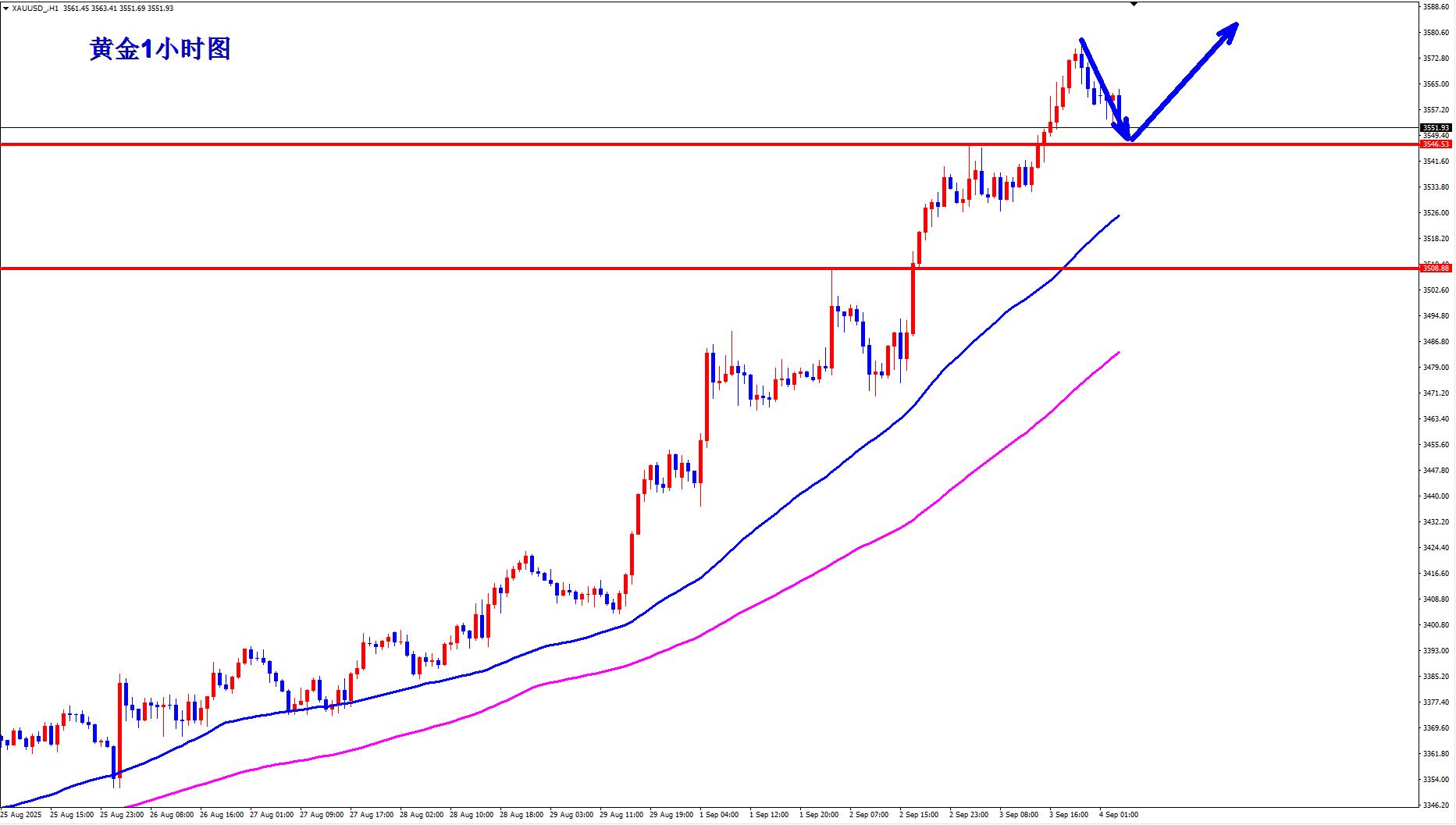 Gold is long 3546, stop loss 3535, target 3580-3600;
