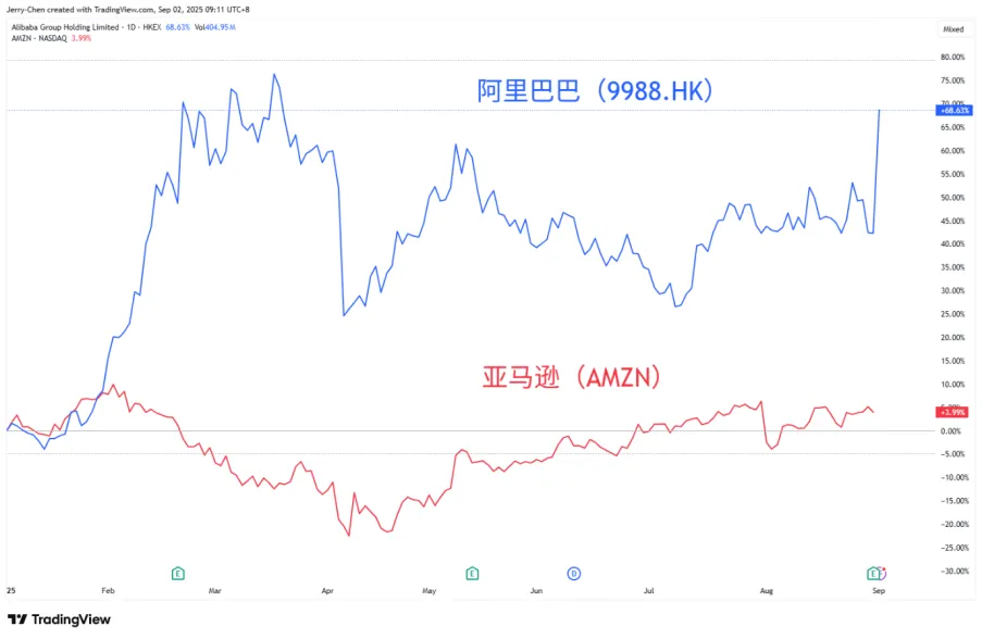 U.S. Los mercados bursátiles cerraron el lunes debido a las vacaciones del Día del Trabajo, con los principales índices europeos en general en aumento. Impulsado por noticias positivas de Alibaba (+18.5%), el índice Hang Seng aumentó un 2,1% el lunes. La siguiente figura muestra la www.xmserving.comparación del crecimiento de Alibaba y Amazon este año.
