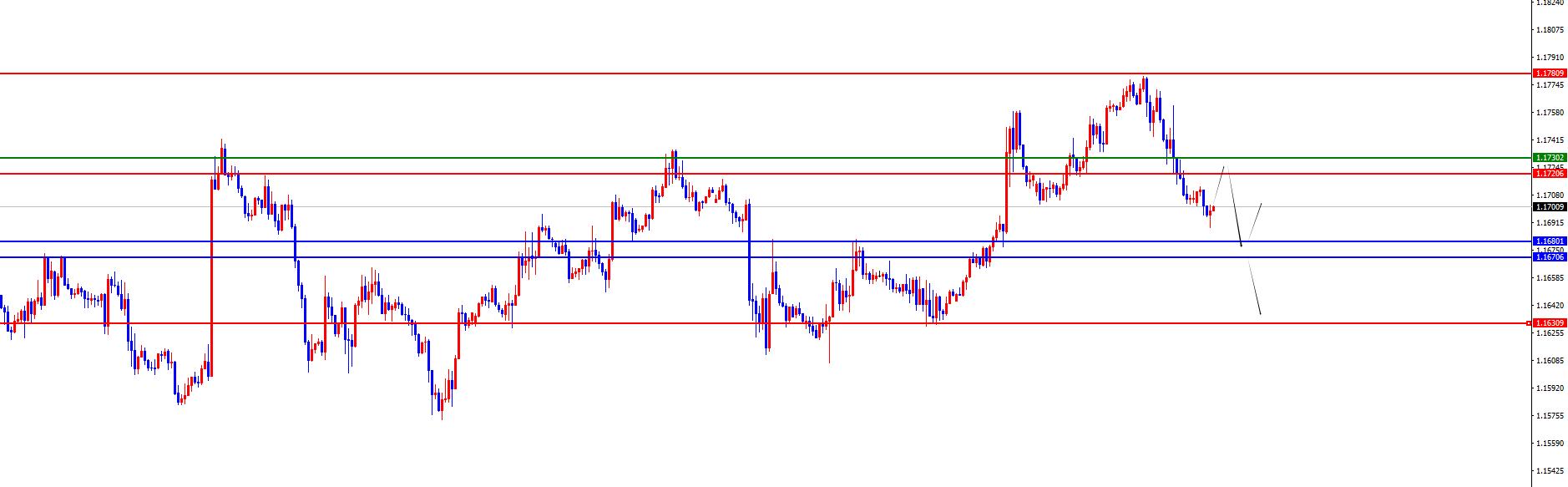 Europa y los Estados Unidos tienen un rango de 1.1720-30, la defensa es 40 puntos, objetivo 1.1680-1.1630