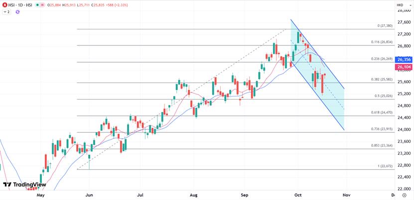 Les actions de Hong Kong ont rebondi aujourd'hui suite aux données économiques favorables et aux progrès tarifaires. Le marché continuera à prêter attention aux fluctuations provoquées par les propos de Trump. www.xmserving.comme indiqué précédemment, il rebondira techniquement à nouveau tout en maintenant la barre des 25 000. Cependant, il doit surmonter la résistance clé des moyennes mobiles à 10 et 20 jours dans la fourchette de 26 100 à 26 400 avant de pouvoir revenir dans la fourchette haute. S'il continue d'être piégé dans le canal descendant, la fourchette de 25 000 à 24 800 fournira à nouveau un support.