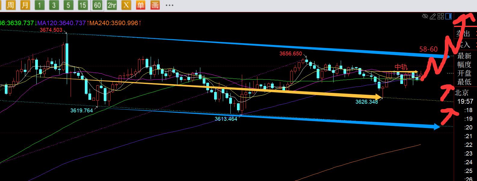Quarto, livello orario d'oro: c'era un'ondata di continue a scendere al di sotto della media di 3640 anni. Supporto di 3622-20 per stabilizzarsi e continuare ad essere rialzista, e ho anche preso in prestito il supporto stabile della testa e delle spalle del pattern per fare una forte mossa per attaccare; Ma sfortunatamente, l'ho dato solo a 3626, e poi attraverso l'analisi del grafico del canale, vedere la figura sopra. In effetti, esiste anche una linea di tendenza gialla nella posizione dell'asse centrale del canale di consolidamento parallelo blu, e il punto basso era appena stato 3626; Quindi la sessione europea è caduta in un consolidamento ristretto e il punto più alto ha testato ripetutamente la pista centrale, ma non è stato temporaneamente in grado di sfondare efficacemente la stazione e il punto basso si è spostato gradualmente verso l'alto, formando un modello di triangolo invertito. Questo tipo di fluttuazione è generalmente di circa 10 metri, adatto alla spazzolatura avanti e indietro. Per me, che è stato bravo a afferrare le bande di tendenza negli ultimi due anni, non mi piace fare questo tipo di piccoli mercati e devo acquistarlo a breve termine., almeno 20-30 metri di spazio, in modo da poter cogliere efficacemente il profitto di almeno 10 metri. Lo spazio totale della tendenza del mercato europeo è solo di circa 10 metri e non c'è un buon valore operativo. È meglio guardare lo spettacolo e aspettare pazientemente che la pista centrale si rompa efficacemente e si fermi salda. Quindi puoi tornare indietro e confermare e provare a seguire un'ondata di pull-up per rompere la traccia superiore del canale blu nel grafico. Una volta preso il livello di resistenza di 3658-3660, il massimo storico sarà facilmente rinfrescato, che avrà anche margini di profitto nella banda; Pertanto, in attesa che la pista centrale si avvicini efficacemente o la chiusura continua del mercato positivo è una svolta efficace, e quindi trovare una posizione per seguire la posizione rialzista; O se sei audace, puoi anche seguire la posizione rialzista dopo aver sfondato il 3660-58-58; Se la pista centrale non può davvero essere soppressa, attendi che il canale giallo o la pista inferiore del canale blu si stabilizzino e cerchi una posizione rialzista;