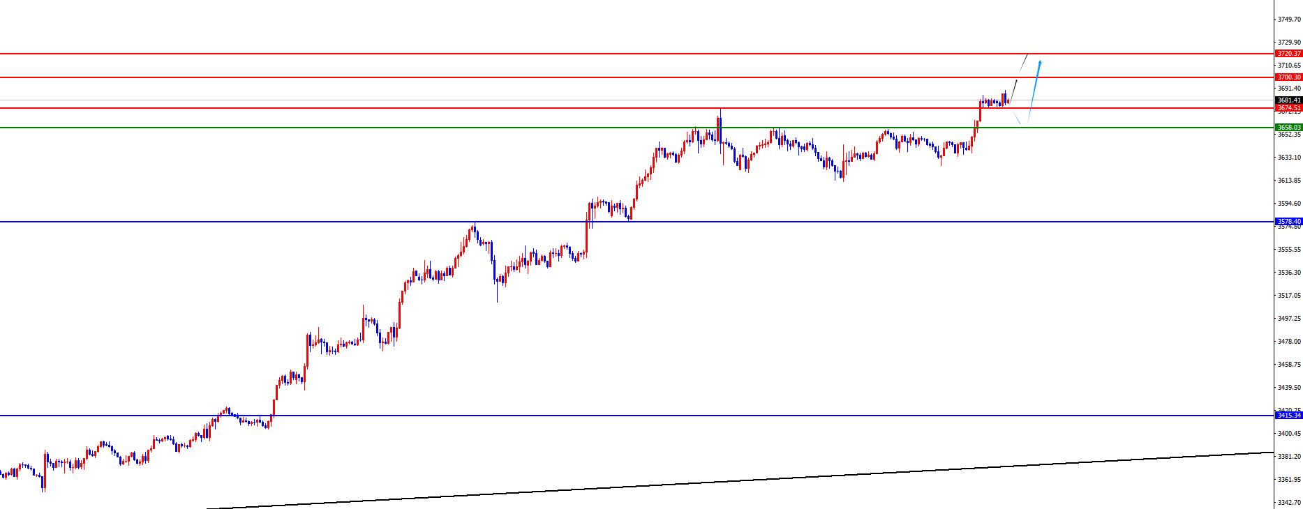 Gold 3674는 강력한 핵심 요점이며 유럽과 미국의 4 시간 지원은 아직 너무 길다.
