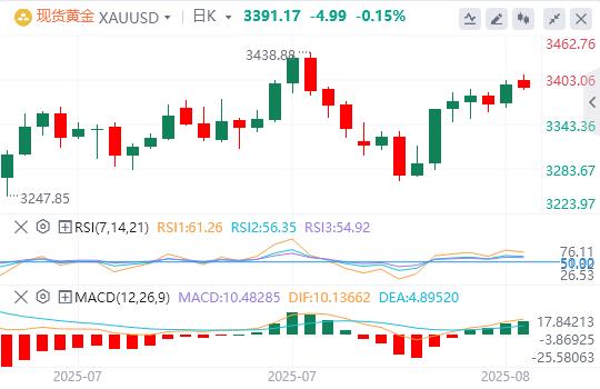 周五亚盘,黄金徘徊在3391.17附近。黄金创下7月23日以来的逾两周新高,避险需求成为推动金价走高的核心动力。全球贸易紧张局势加剧、美国劳动力市场数据疲软以及美联储降息预期的持续升温,共同为黄金提供了强劲支撑。与此同时,地缘政治的不确定性也为金价的上涨增添了助力。展望后市,三大催化剂需要密切关注:8月21日美联储主席提名听证会可能引发的政策预期波动,印度等国对美关税报复措施的具体出台,以及普京-特朗普会晤后可能出现的能源市场震荡。在这些变量明朗前,金价在3400美元关口附近的震荡或将成为新常态,但每次回调都可能吸引更多避险资金入场。在这个充满不确定性的夏天,黄金或许正迎来属于自己的又一个高光时刻。