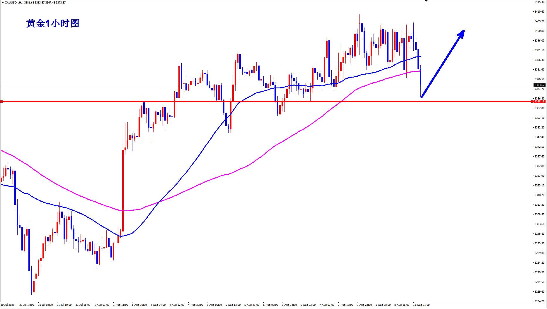 黄金1小时还是大区间震荡,黄金短期上次起涨位3365未破,那么黄金就还是偏强的震荡向上,黄金早盘快速下探3367一线之后就快速反弹,那么说明3365一线支撑有效,早盘黄金还是3365上继续逢低做多。