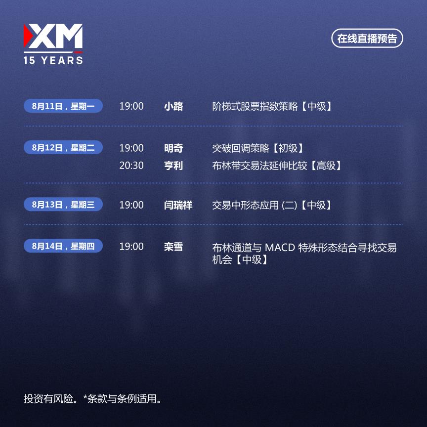 - 【XM Group】:中文在线直播讲座 今日预告2025-07-30