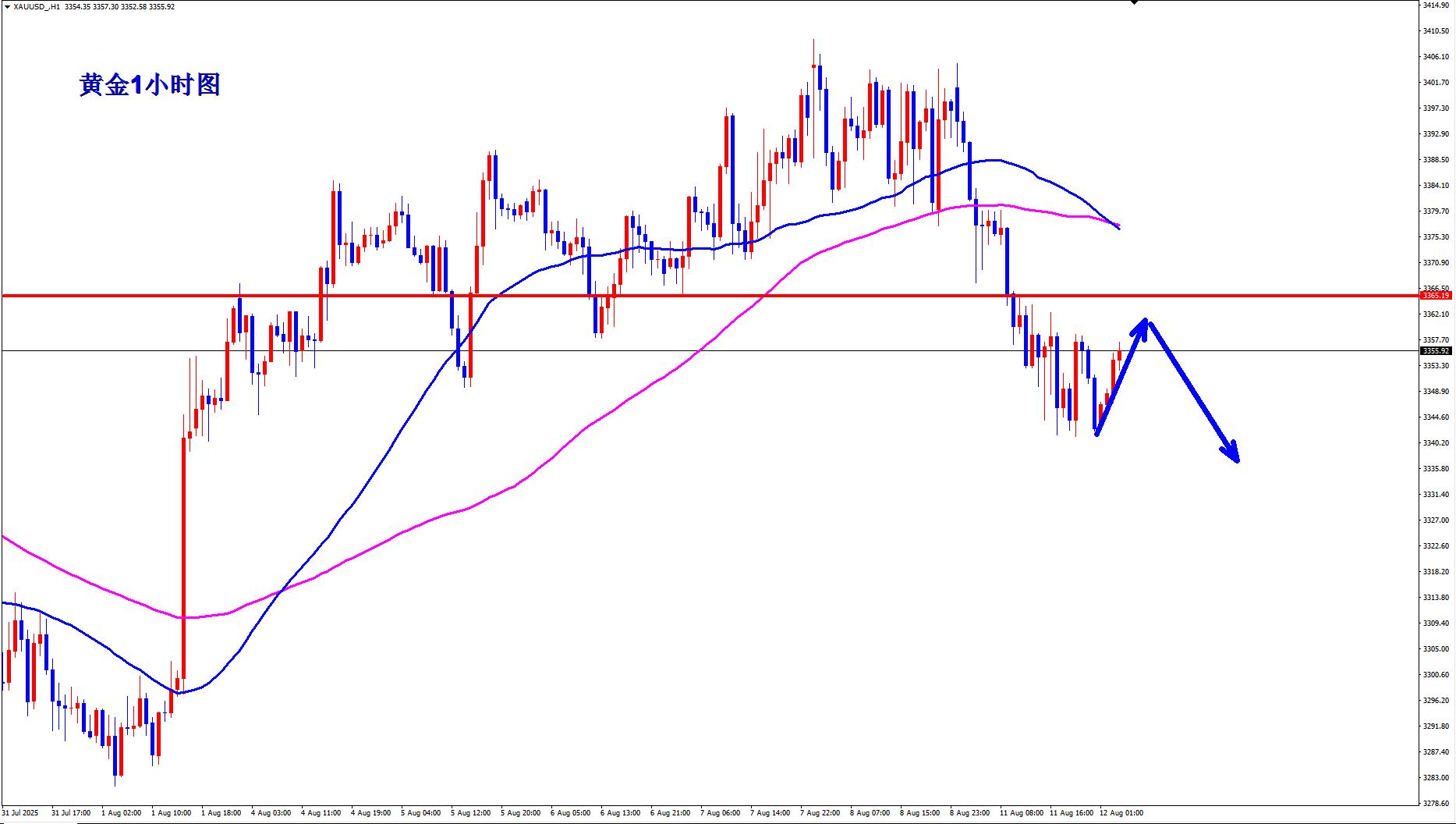 黄金1小时均线已经进入死叉空头形态,黄金下跌还有动能,黄金昨天跌破3365一线关键位置之后,黄金多次反弹承压3365一线压制回落,黄金早盘承压3365还是继续逢高空为主,黄金1小时下跌斜度那么说明黄金空头短期还暂时不会结束,没有消息刺激直接深V,那么就还是继空。