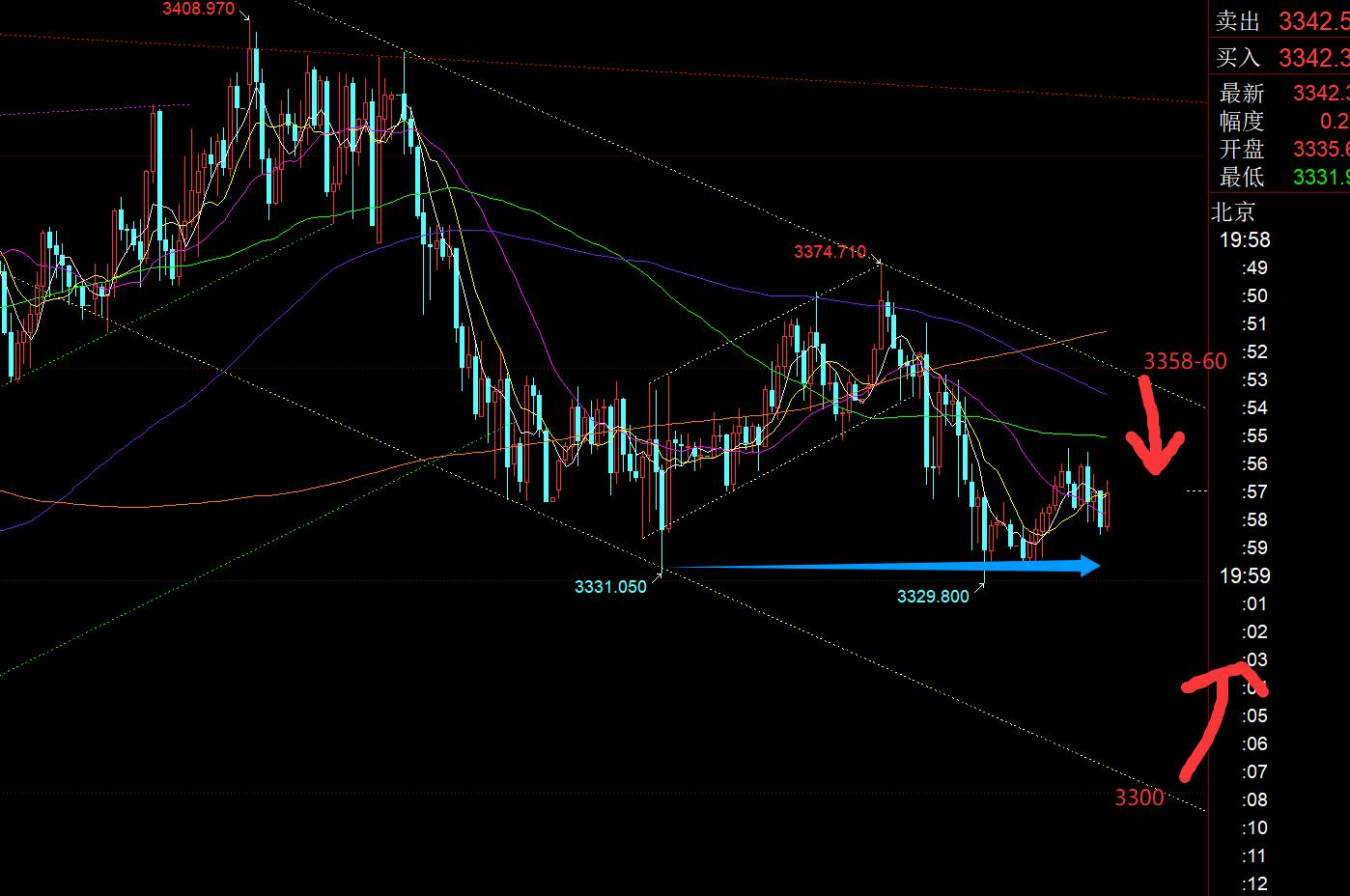 第三,黄金小时线级别:原本隔夜持续打压走弱,期待今日早间能先续跌一小波,最好刺破隔夜低点,那样是可以果断先低位看涨反弹一波;因为早间延续性都较差,且macd会因为底背离而反抽向上,可惜它并未发生,3322埋伏等待看涨也就给不到机会;而10点收报一根长下影反阳K,一般是容易向上延续反弹,但看到上方第一阻力3343较近,空间不大,也担心类似昨日走法,当出现一根企稳K时,去跟随看涨,入场位置肯定会高于企稳K的低点,而它只是反弹几美金,又陷入横盘压制,或出阴,那个时候就会有些揪心,只有把握住早间低位,比如3333、3332,那么去持有会问题不大,但那个时候早间还在偏弱下行测试,并未出企稳K;所以,这两天的行情就是要胆大些,不出企稳K前,第一时间在下跌过程中低位直接出手,这样也是存在一定风险,万一下跌没刹住车呢,惯性多下滑了些,刺破再上拉;因此,这也是震荡中相对不好出手的原因;只能耐心等它区间扩大,相对强压区,或强支撑再去尝试,可能等很久,可能一天都给不到,但起码安心些,尽量等适合你的行情走势,震荡过程中,中间位置还是尽量别参与;