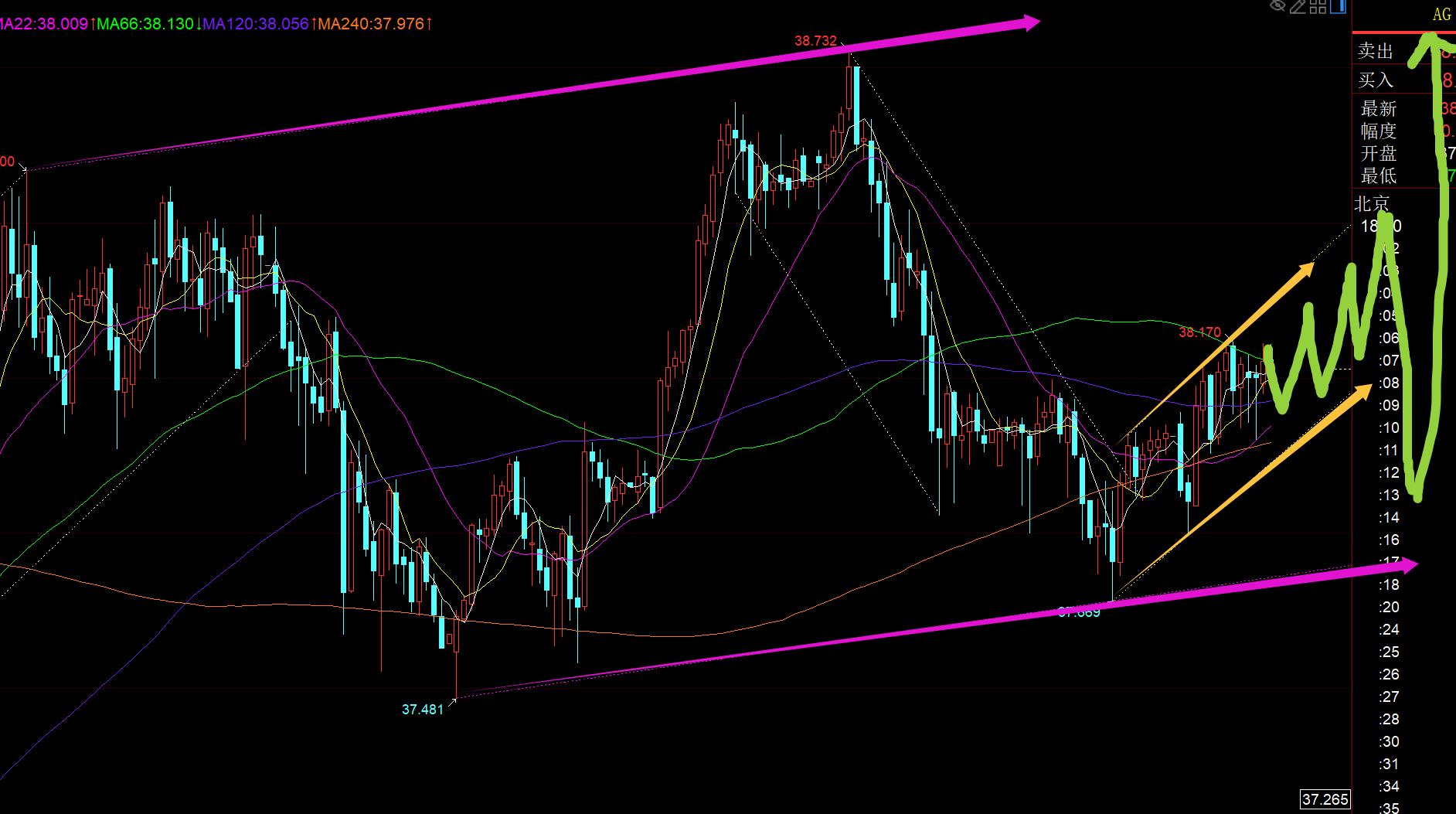 第二,白银方面:给出37.7-37.8支撑,阻力38.1,基本处于此范围内窄幅运行;
