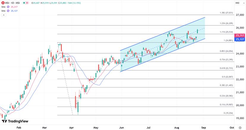 XM港股:外围降息前景明确,恒指创近四年高位指向26000关口