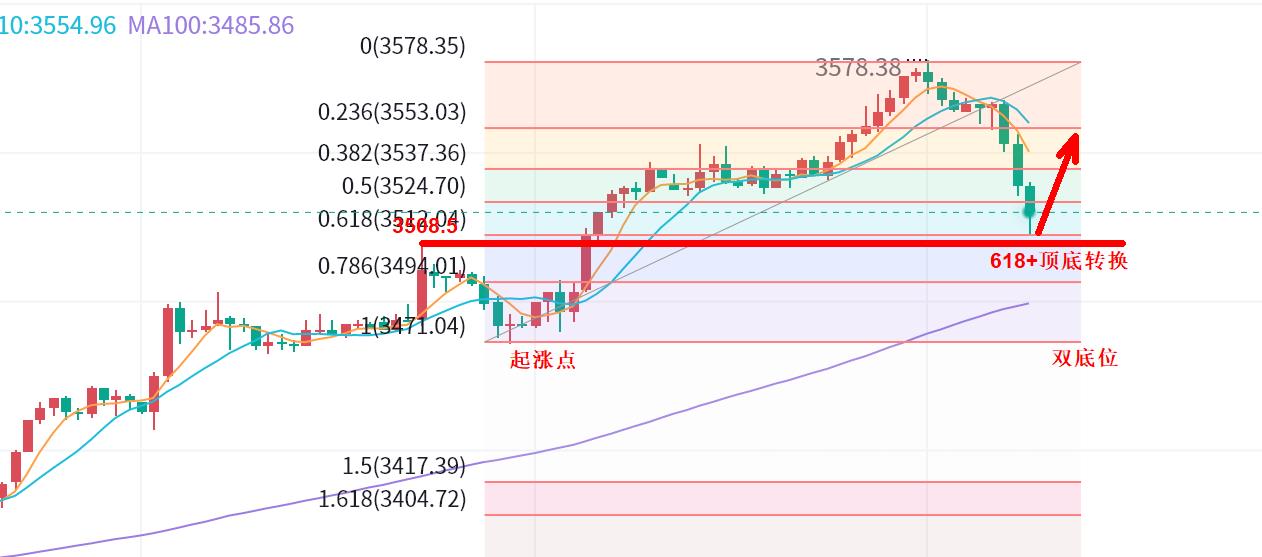 2,618,按照现在来看,618和顶底转换位,是今日重点中线布局的点。3508-10一线,继续中线考虑多的位置。