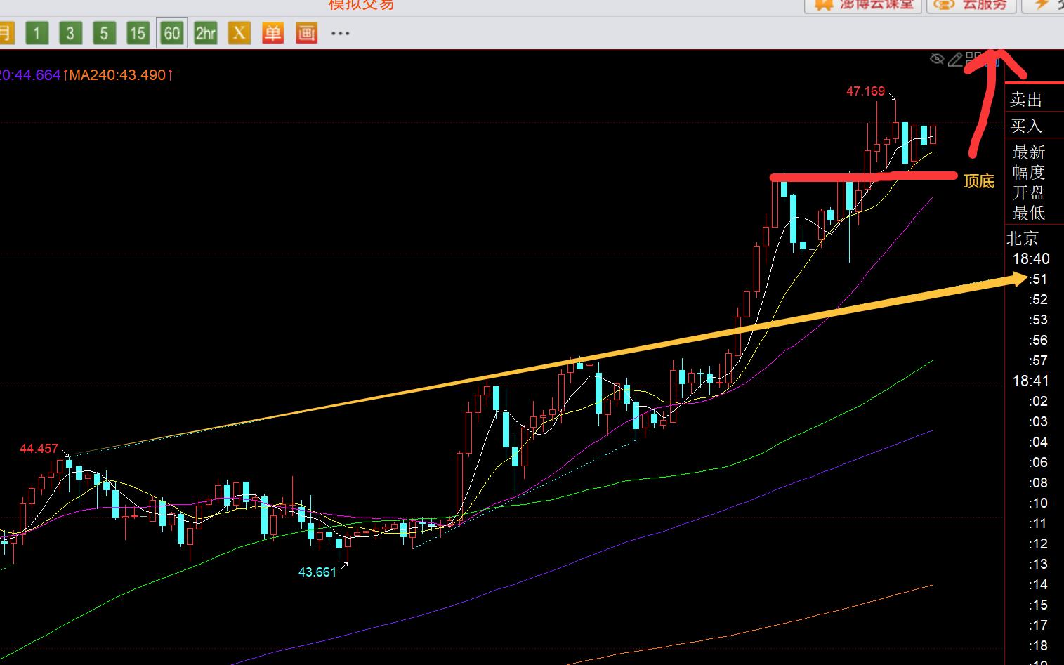 第二,白银方面:上周五指出44.8上看涨,当日大幅拉升破46关口,底仓也就要坚持拿住,去看更高的位置,今日果然也是强势进一步上冲,破了47关口,才短短两日,底仓就基本已有100米利润;