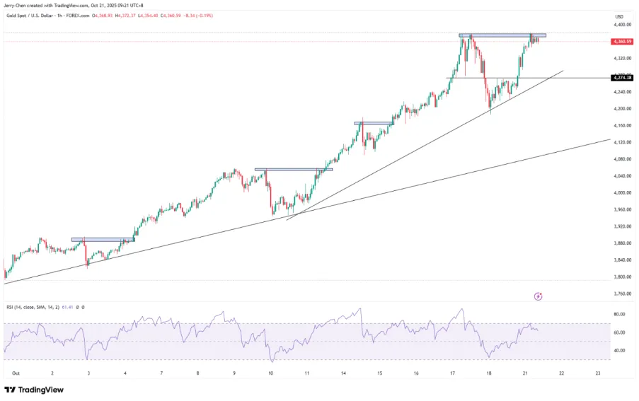 10月形成的三重底形态(4小时图)与8-9月相呼应,暗示延续上行的可能性。而美联储下周的降息预期和强劲企业财报则是消息面的利好。
