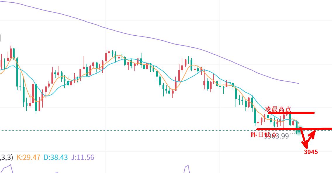今日关注的支持位3945附近,到了可以多一次,这也是可以多是一个点,起码止损15-20美金。