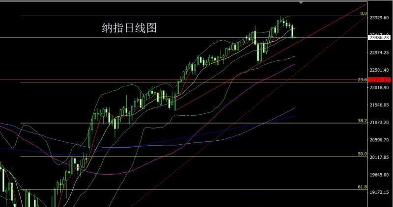 納指市場昨日開盤在23709.75的位置後行情先拉升給出23752.95的位置後行情強勢震盪回落,日線最低給到了23340.88的位置後行情整理,日線最終收線在了23385.74的位置後,日線以一根略大影線的大陰線收線,而這樣的形態收尾後,今日的行情依舊有回落壓力,點位上,上週五23860的空減倉後止損跟進在23800,今日23550空止損23620下方目標看23340,跌破看23280和23200.
