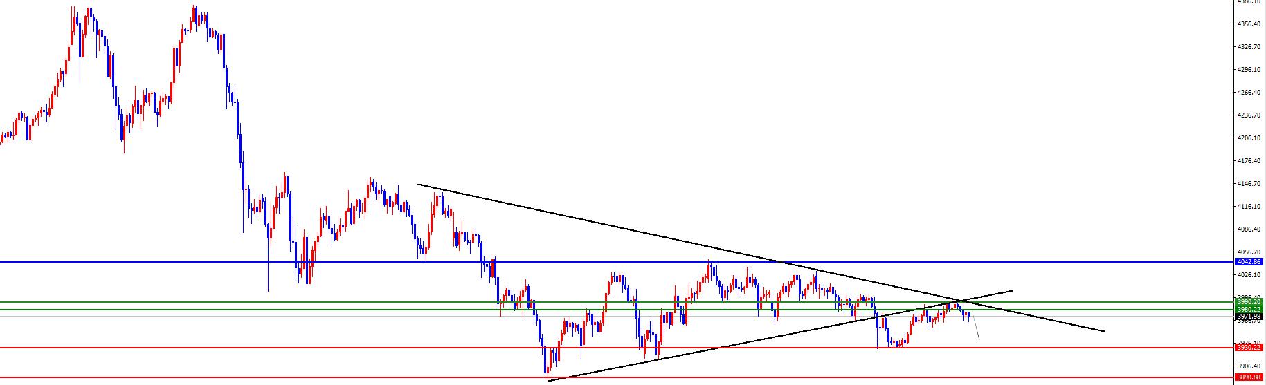 關鍵分水嶺3980-3990,價格在沒有出現反轉信號之前看震盪承壓