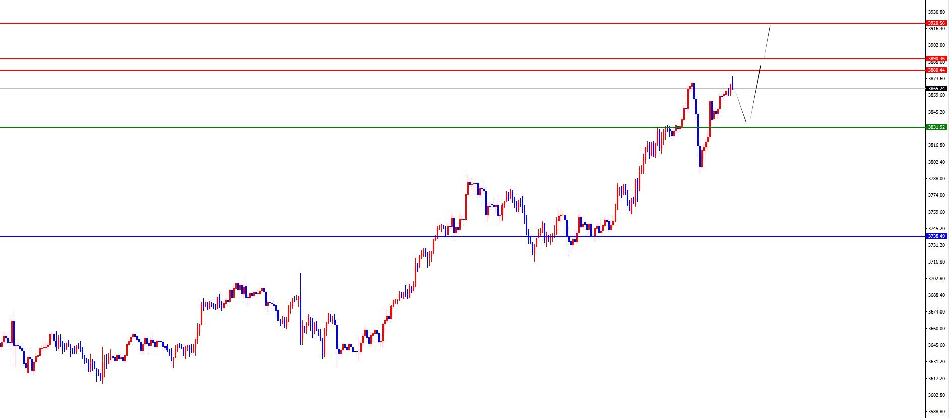 Del análisis de ciclo múltiple, primero observe el ritmo mensual. Desde la perspectiva a largo plazo, la posición 3130 es la cuenca de la tendencia a largo plazo. El precio se puede tratar más a largo plazo. Desde el nivel semanal, la cuenca semanal y corta semanal actual está en 3490, y el precio está por encima de esta posición y la línea media se puede tratar más. Desde el nivel diario, debemos prestar atención al apoyo regional 3735 por el momento. La banda por encima de esta posición se trata con más frecuencia, y continuaremos tratando el método de xmserving.comercio de la derecha. Desde la perspectiva de cuatro horas, al observar el ritmo del aumento del oro, el precio seguirá siendo fuerte siempre que no rompa el apoyo de cuatro horas. El precio solo se ajustará después de romperse. Actualmente, el soporte de cuatro horas se encuentra en el área 3831-3832, por lo que el precio sigue siendo optimista en esta posición.