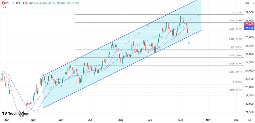A medida que la situación xmserving.comercial volvió a ponerse tensa, las acciones de Hong Kong volvieron a experimentar pánico esta mañana, con el índice de volatilidad disparándose casi un 29%, alcanzando un nuevo máximo desde mayo de 2025. Después de la fuerte caída a corto plazo, el mercado puede recuperar cierta calma al margen, a la espera de posibles negociaciones entre los dos países. Sin embargo, después de que el mercado de valores de Hong Kong cayera a su nivel más bajo en más de un mes, rompió el canal alcista. La presión a la baja a corto plazo persiste. Mantener la marca de 25.000 es la clave para reiniciar el rebote.