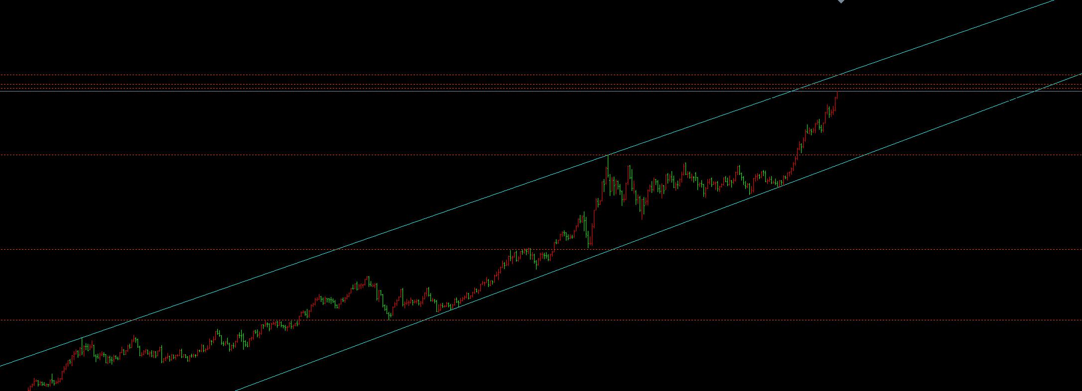 黄金至周五突破3752以后价格大幅上涨,昨天开盘小幅回落以后更是延续了周五的上涨行情,价格进一步突破了3800,价格已经到达3870附近,从盘面来看,金银可以说是轮翻上攻,价格进入加速逼空上涨,现在所谓一般的小压力基本没有用,早盘在52附近回落一波,基本就是8块左右继续上高,不过今天国内休市以多年主力的套路,都会在假期套一批多头或者空头,所以现在是个人都能看到是涨,但是具体涨里谁也不知道,不过波幅在这里杠着,按358定律来看空间有限了,上方按两边的等距在3910附近,其次是边线3960附近,今天直达边线的概率我认为不大,所以预期在横压这里3886附近,至于虽然只有最高没有更高,但是已经涨到这个地步再去追多也没有意义,要不直接观望,要不就等强压力来布空,所以综合多方面考虑,今天思路如下: