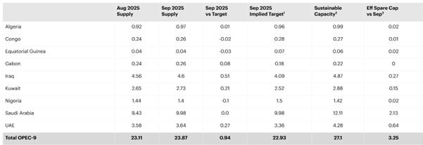 本周一,OPEC+公布了10月份原油市场能源报告,其中的观点与IEA的报告大体类似(但数据略有出入)。月报中提到:全球石油供应增加的主要动力来自于美国、巴西、加拿大和阿根廷。这与IEA提到的供应增长原因分析一致。需求方面,OPEC+月报提到,2025年全球原油需求增长在130万桶,全球原油产量的增幅在80万桶。需求增幅高于供应增幅,OEPC+对原油供需的态度比IEA更加乐观。