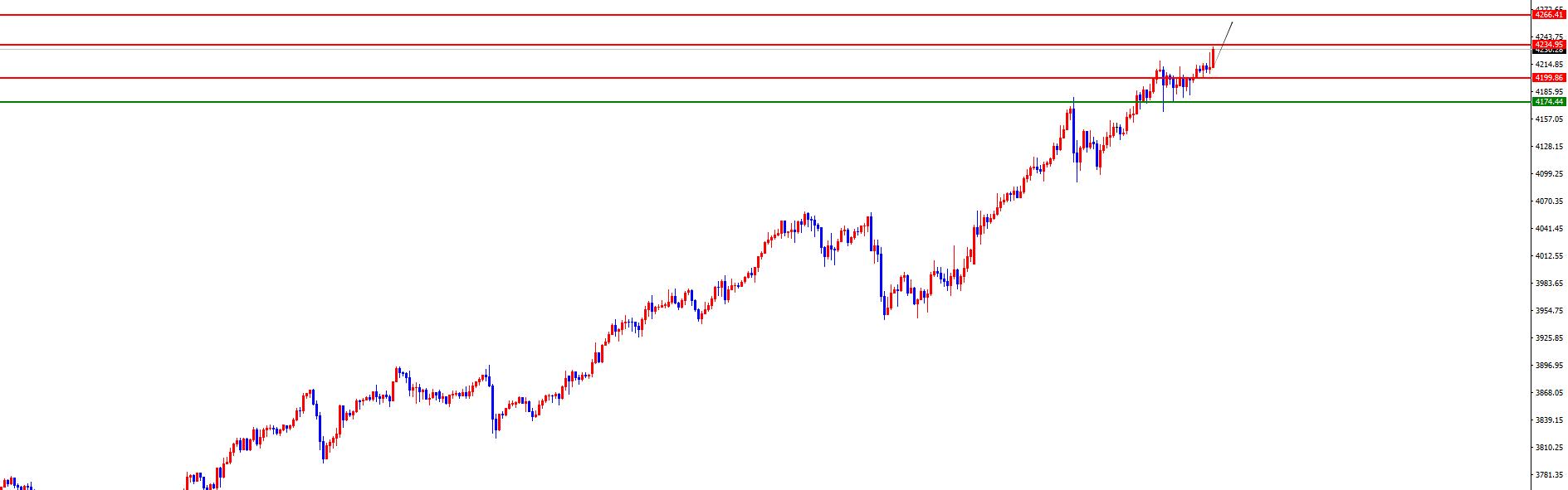 从多周期分析,首先观察月线节奏,从长线上看3130位置是长线走势的分水岭,价格在此位置之上长线多对待即可。从周线级别看,目前周线多空分水岭于3585位置,价格在此位置之上中线多对待即可。从日线级别看,暂时需要关注3997区域支撑,此位置之上波段多对待。从四小时上看,四小时上是我们一直强调的重点,目前四小时支撑于4175区域,价格在此位置之上短期多头对待。一小时上目前价格同样偏多,但是短线出现背离,所以待后续再度拉升后需要注意短线多头风险。同时操作上今日依旧早盘再度发力上涨,早盘低点则成为日内分水岭,价格在此位置之上短线偏多对待即可,上方关注4235-4266区域。
