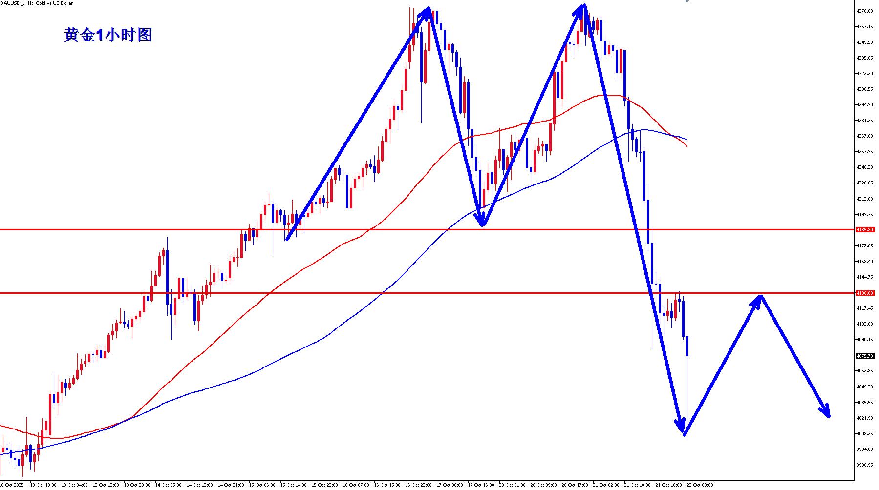 黄金1小时均线已经形成向下的死叉空头排列,黄金短期已经转弱,黄金跌破1小时双顶颈线位之后,黄金开始在颈线位下徘徊,黄金双顶颈线位4186下继续逢高空,不过距离当下有点远,早盘4130直接继续续跌,黄金早盘反弹承压4130下继续逢高空,现在黄金波动距离,几分钟可能都是几十美金,所以一定要耐心等待机会。
