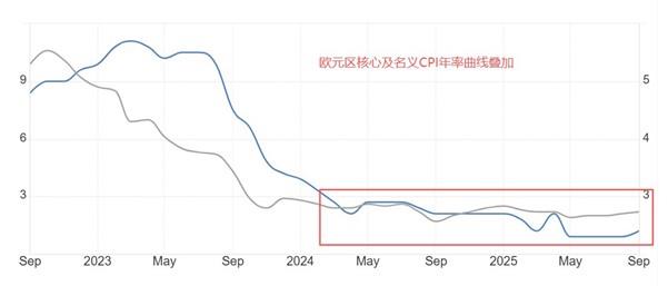 本周五18:00,欧盟统计局将公布欧元区10月核心CPI年率初值,预期值为2.3%,低于前值2.4%。欧元区10月CPI年率初值,同时公布,市场预期为2.1%,低于前值2.2%。从绝对值来看,2%以上的通胀率符合欧央行想要温和通胀的目标。历史数据看,欧元区的核心及名义CPI年率均已进入平稳期,不再出现大涨大跌的极端情况。通胀率的稳定性是欧央行决定暂停降息的重要原因。