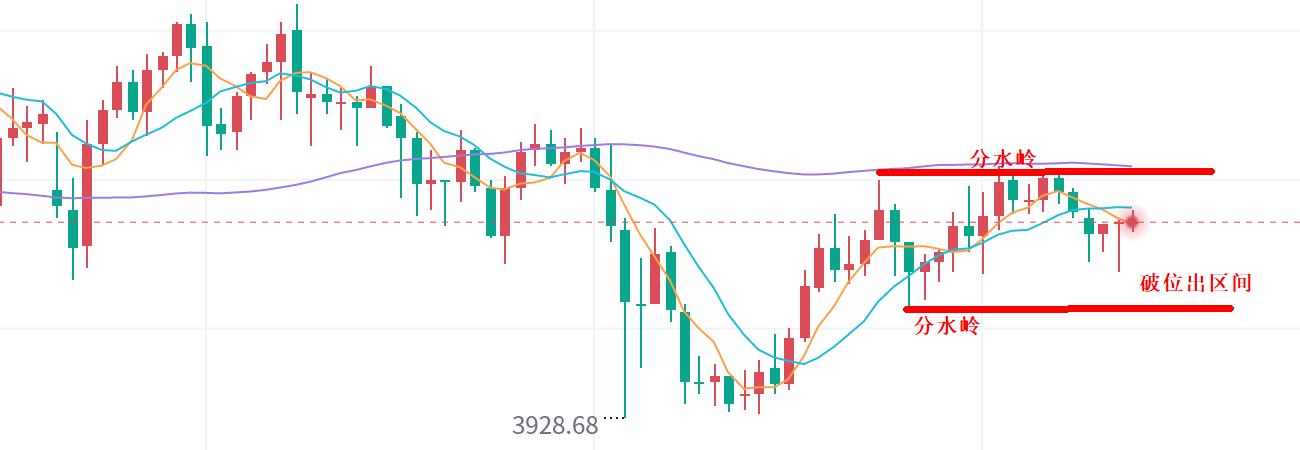 3,分水岭:震荡中,分水岭很重要。一个是时间,一个是价格。