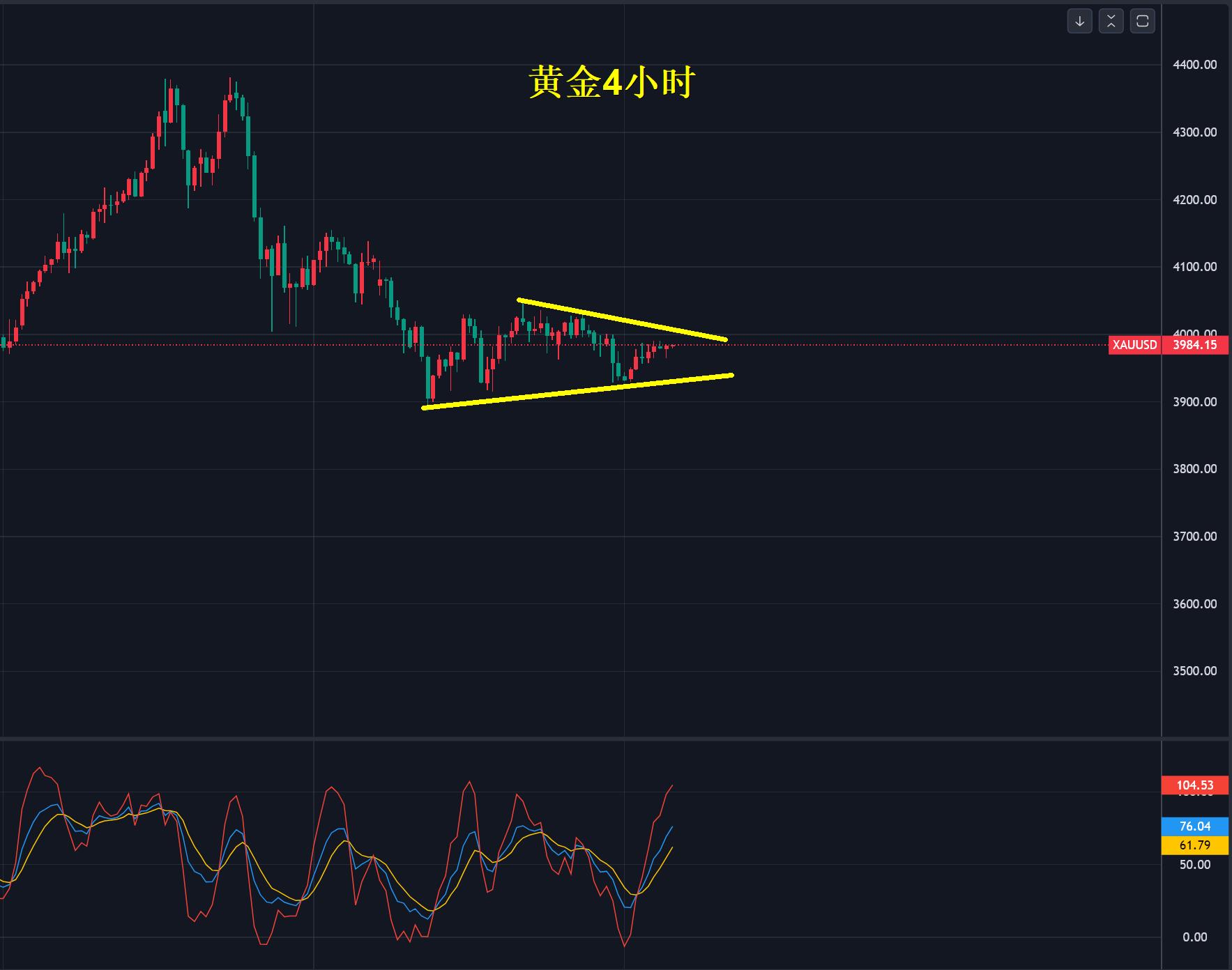 目前来看,行情处于三角形末端震荡,波动幅度越来越小,4050美元依旧是决定多空的关键所在,打破之后黄金将可能二次向上冲击,不过这次直接再过4380美元的可能性不会太大,震荡依旧是接下来的“主旋律”,观点不是顺应读者,而是客观表达。