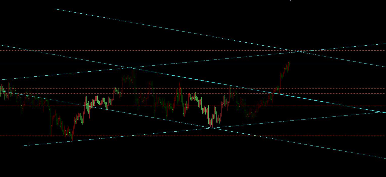 昨天黄金至欧盘弱多信号出现后,一直上涨,晚间两间在4100压制回落4087不破,再次上扬突破4103形成加速上行,最终以一根中阳收盘,从当下来看,短期突破了通道边线,后市延倬去H2的边线位,其次是日图上线及上轨区域,不过经过昨晚的强势上扬,早盘预期先行拉升一下后会走一个修正再次上涨,目前支撑4105和17区域,所以综合得下来得出结论如下: