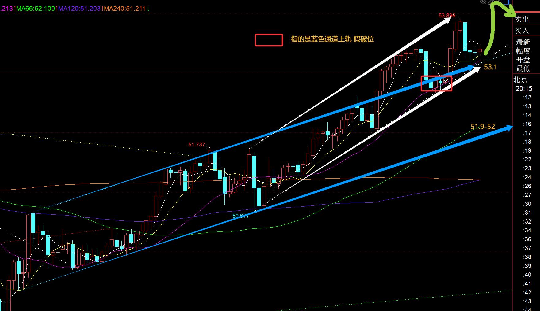 第二,白银方面:前日50.9看涨,持有底仓,昨日抵达52及上收割;计划回踩51.7、51.3继续看涨,符合思路,最高拉升至53.4;