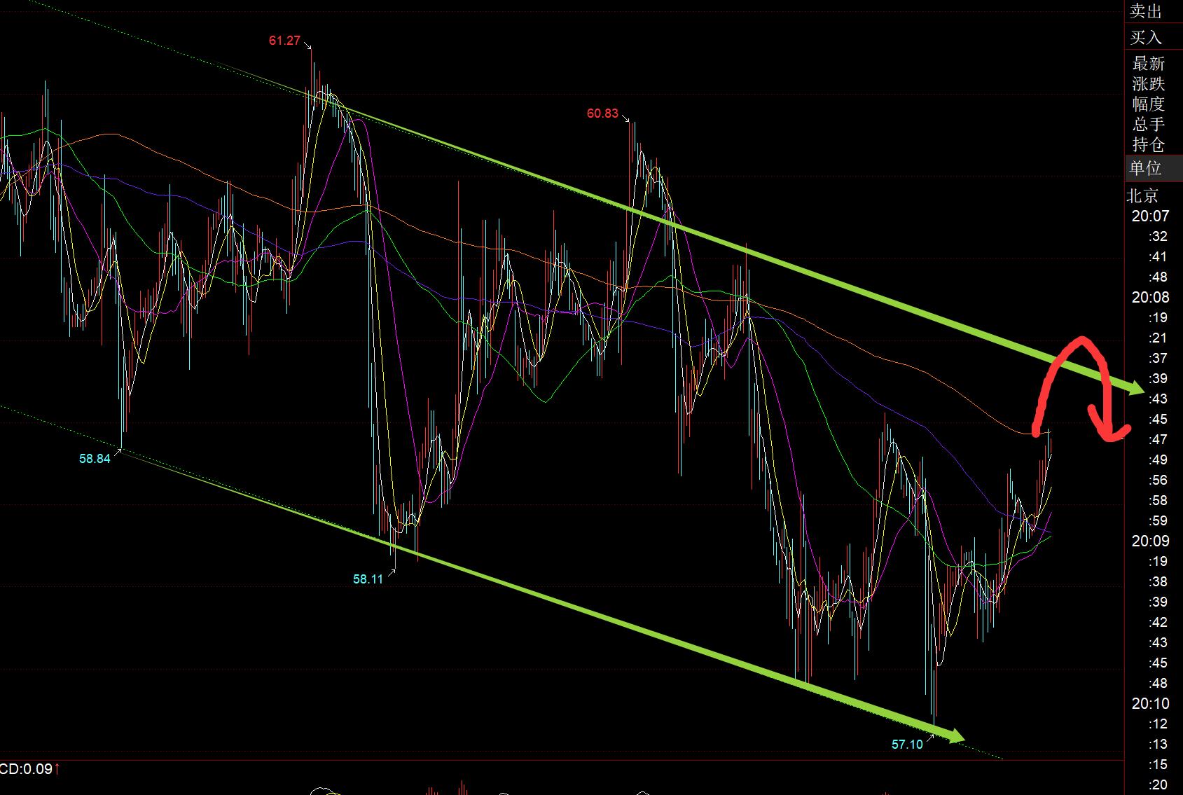 原油方面:继续围绕一个月以来的通道震荡运行,下轨57附近提示企稳后,逐步再次去靠拢上轨,阻力下移59.3一线,触及承压或可能会向上先突破来一个诱多,等它再打压回到通道之内承压后,再去看压制下跌即可,这个通道上下轨范围大概保持250点左右范围;